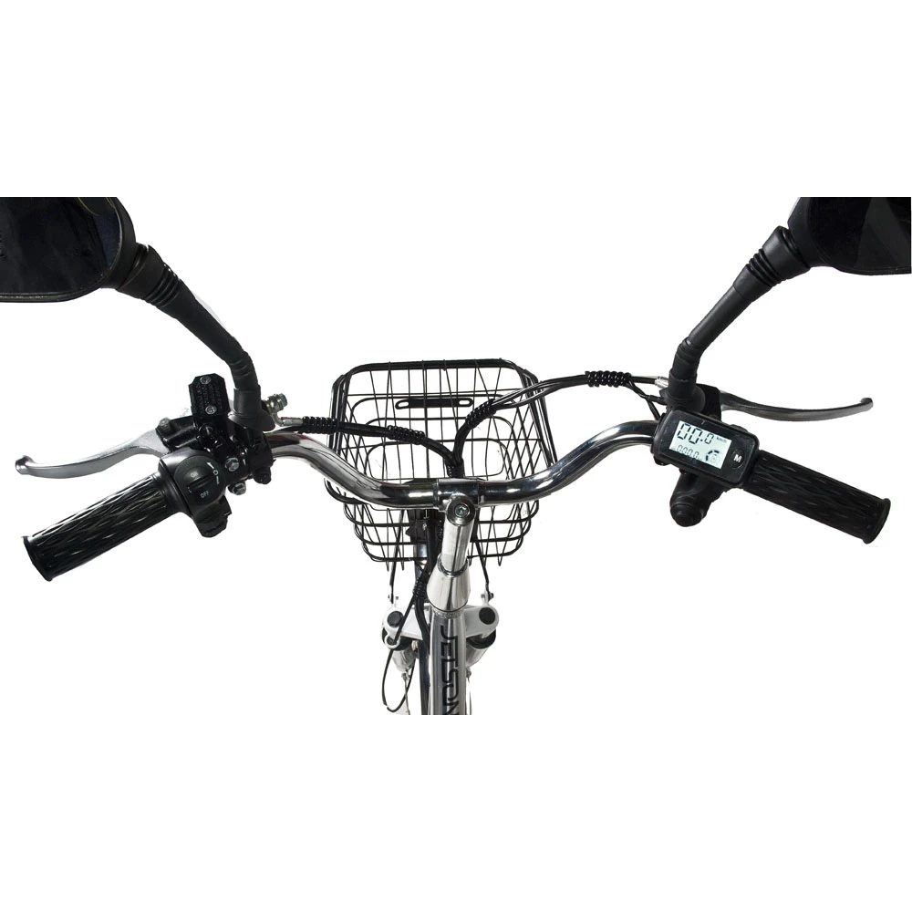 Электровелосипед оснащен надежным двигателем мощностью 500 Вт, позволяющим развивать скорость 50 км/час. Для обеспечения безопасности и контроля за показателями движения модель оборудована бортовым компьютером. Надежная батарея позволяет преодолевать расстояния на одном заряде 55 км. Вес модели небольшой (33 кг) дает возможность свободно маневрировать на дороге. Функция перехода на педальный режим предотвращает возникновение форс мажорных ситуаций в поездках. Для идеального сцепления с дорогой любого покрытия электровелосипед имеет широкие колеса с мощным протектором.