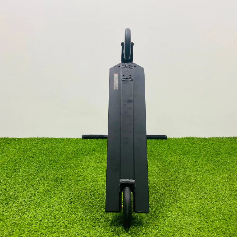 Широкая алюминиевая дека стала намного удобнее для езды за счет своего размера 14*56*41 см.  Классическими остались и заваренные скошенная передняя ее сторона и квадратная задняя. Новинкой в этой модели является фендер, который защищает самокат от непреднамеренного торможения. Привычный стальной тормоз тоже не стали убирать. Алюминиевая фрезерованная вилка соединяется с высоким рулем системой SCS-компрессии  с четырех болтовым зажимом на болтах-"шестерках”. Вращения колес обеспечивает подшипник ABEC 9 Chrome. А сами колеса выполнены из полиуретана с дисками из алюминия.